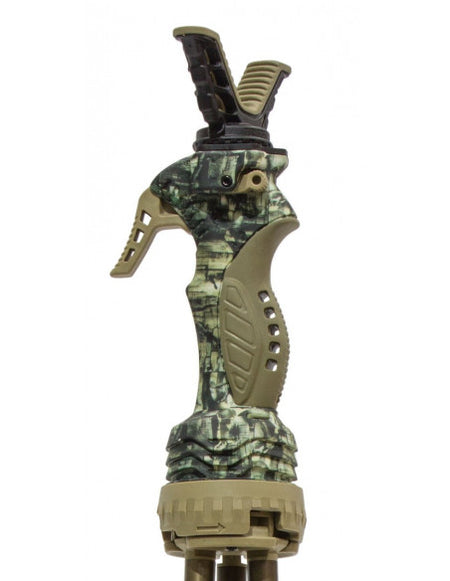 El bastón Primos Trigger Stick Gen 3 se ajusta a la altura deseada manejándolo con una sola mano y con solo apretar un gatillo. Su sistema de fijación rápida con bloqueo integrado, hace que sea más fácil que nunca cambiar la altura del apoyo de forma rápida y precisa. Posee un sistema de rotación suave que ayuda a girar y buscar el objetivo. Puede usarse de pie, sentado o arrodillado.