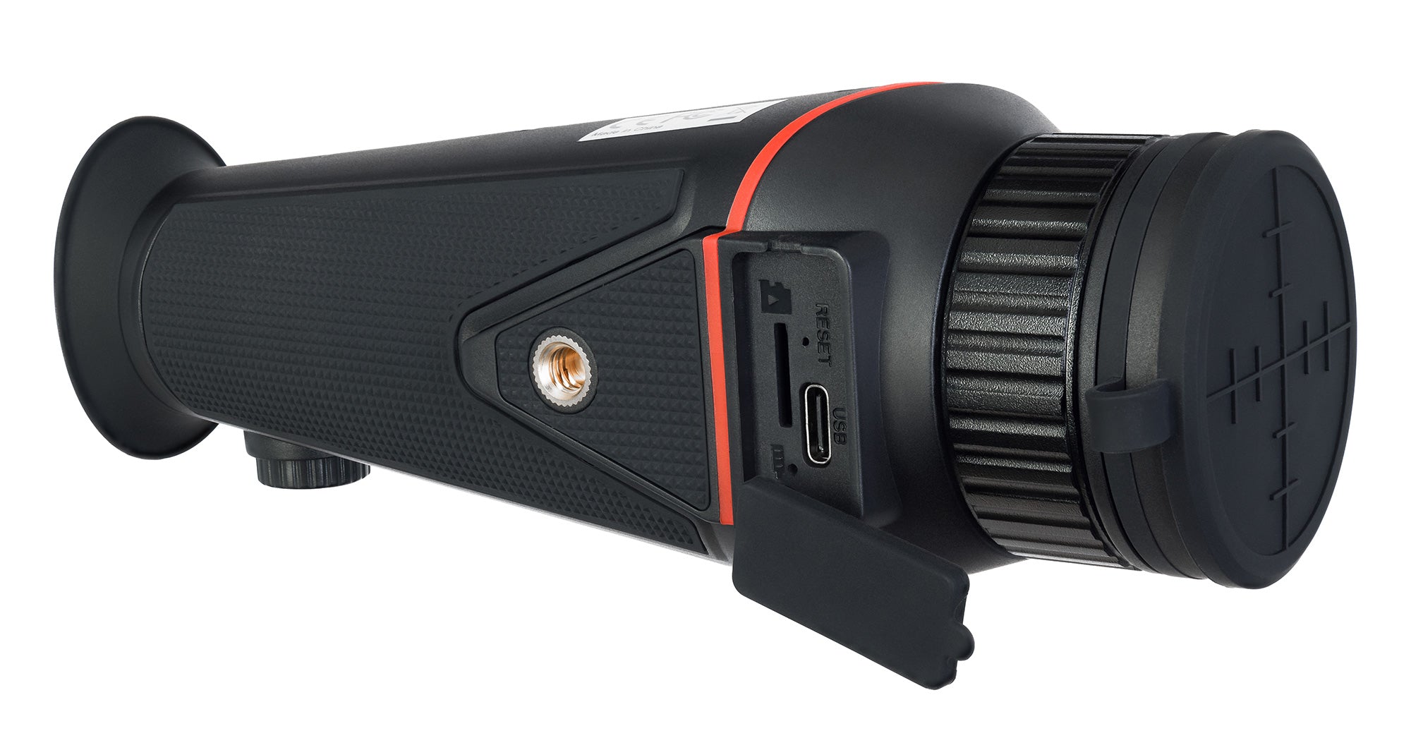 El monocular tiene una grabadora integrada para tomar fotos y grabar vídeos de día y de noche. También puede aplicarles efectos visuales. Los resultados de las capturas se guardan en una tarjeta microSD: fotos en formato JPG y vídeos en formato AVI. Se pueden ver en el propio dispositivo o visualizar en un ordenador insertando la tarjeta de memoria o conectando el monocular al PC mediante un cable USB de Tipo C.