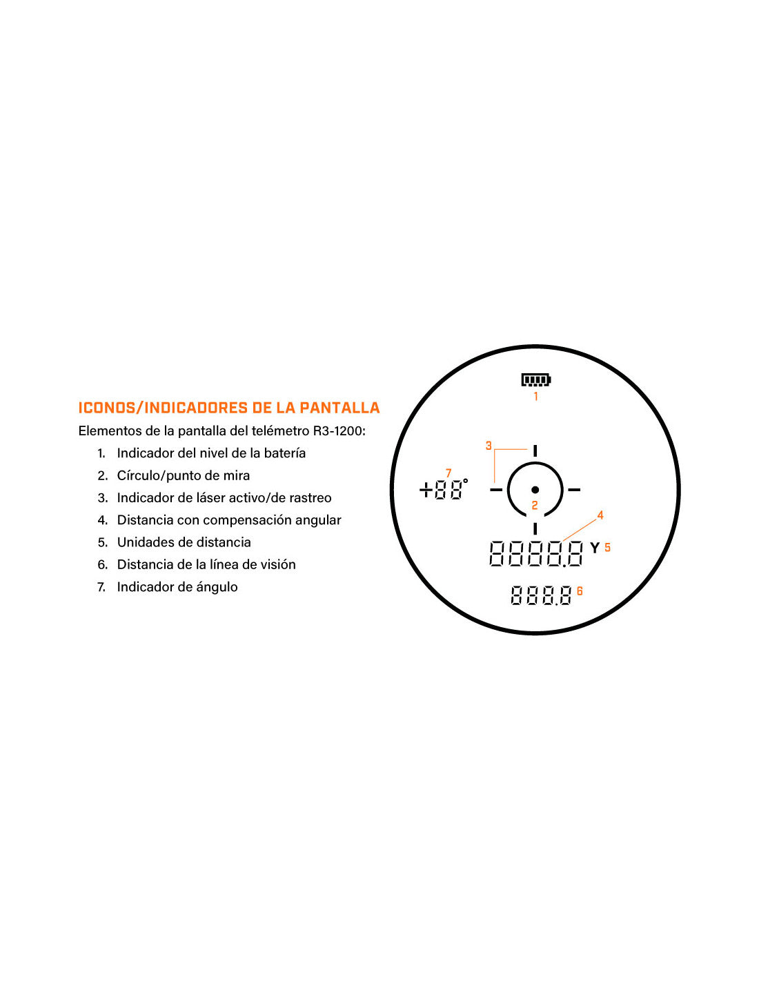 - Tecnología ARC: (Compensación de rango de ángulo) tiene en cuenta el ángulo del terreno, lo que le brinda una verdadera distancia al objetivo en disparos cuesta arriba y cuesta abajo.