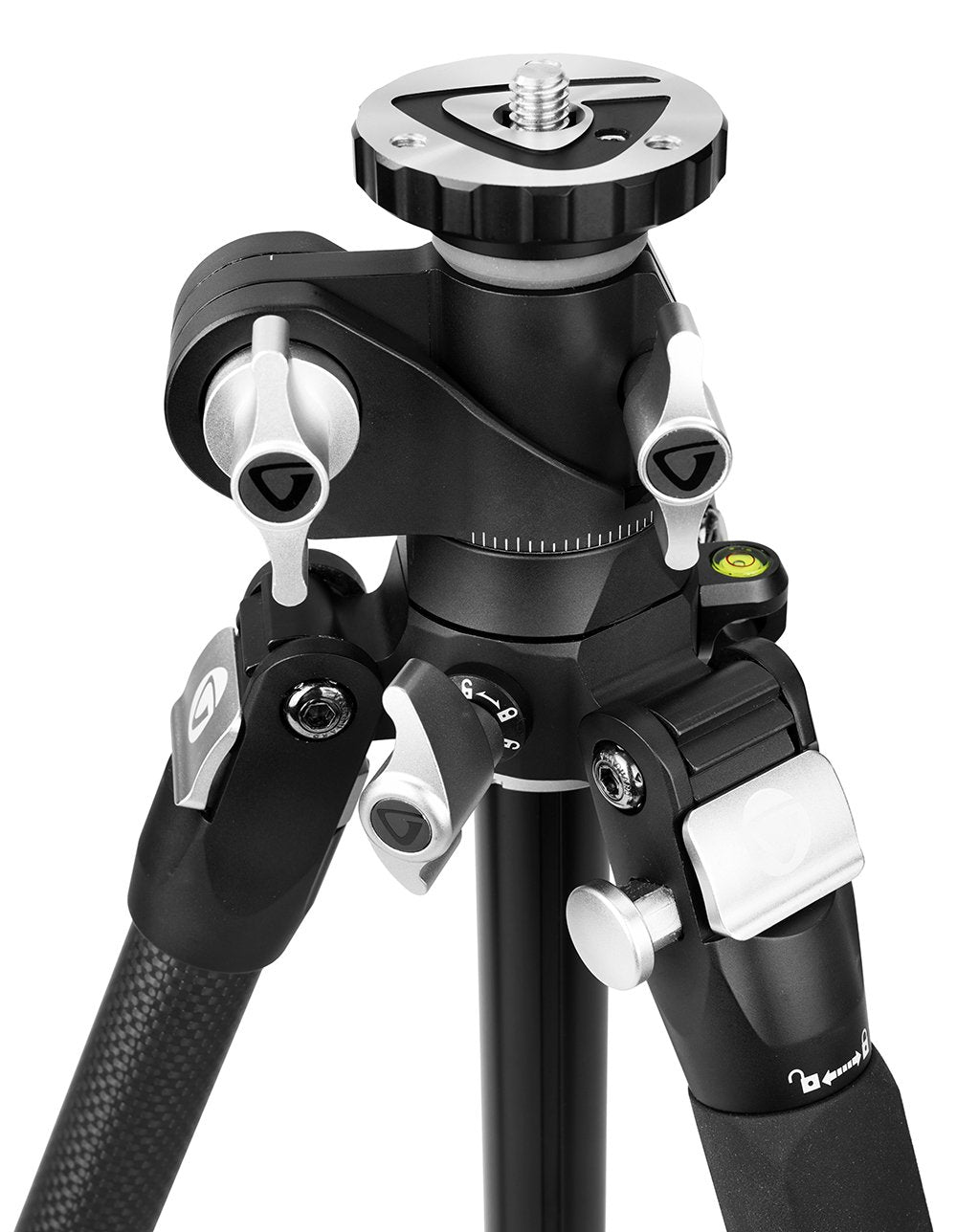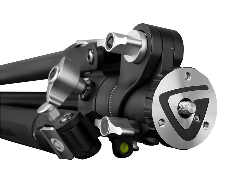 El sistema de bloqueo es sencillo e intuitivo y, gracias a la precisión de la producción CNC, ofrece una base sólida y estable que no tiene rival. Soporte múltiple. Para mejorar la versatilidad de la Columna Central Multi-Angulo (MACC), Vanguard la ha diseñado para que se convierta en un Soporte Múltiple utilizando el VEO+ MA1 (suministrado). Esto te permite acoplar un kit adicional para sacar el máximo partido a tu sesión de fotos, como un micrófono o un foco. La columna central también incluye una escala que, combinada con las otras marcas de grados del trípode, te permite replicar las tomas a lo largo del tiempo. En la cubierta hay un orificio de rosca de 3/8" para fijar accesorios adicionales para sacar el máximo partido a su sesión de fotos, utilizando un brazo de soporte (no suministrado).