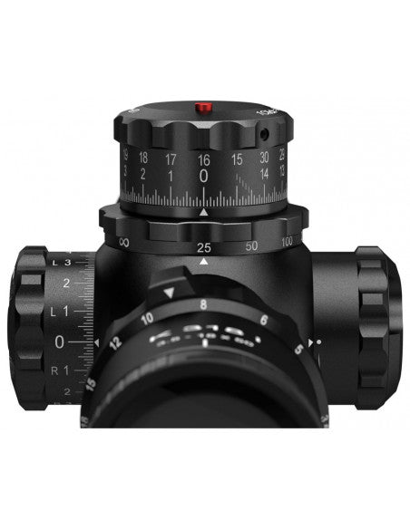 - Sistema patentado de rueda de paralaje integrada en la torreta de elevación, que permite mantener la posición de tiro sin separar el ojo del ocular, además de hacerla accesible de forma intuitiva y ambidiestra.