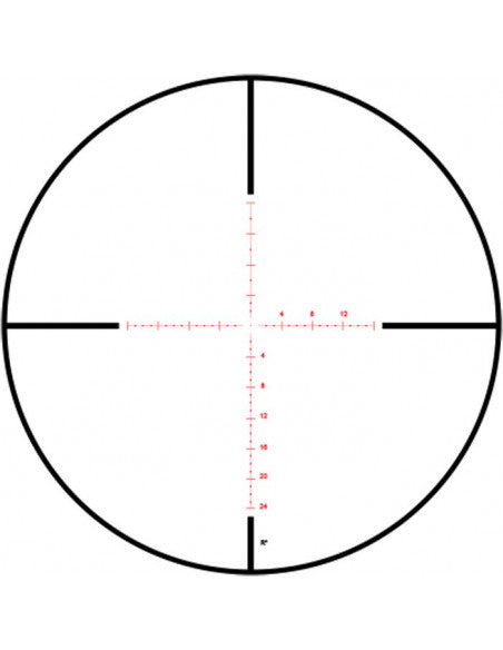 Este modelo, de tipo híbrido, posee una retícula de tipo táctico en segundo plano focal (SFP). Además, la marca ZERO TECH señala como uno de sus puntos fuertes el diseño de nuevas retículas adaptadas a las necesidades de los tiradores de hoy en día. Este modelo utiliza una de ellas denominada R3, un diseño simple que adereza con unos postes gruesos vistos en algunas retículas de caza. Hace que puedan aplicar variaciones de elevación y viento sin tener que utilizar las torretas, ahora bien, con algo más de dificultad que una retícula en primer plano focal (FFP). Salvo que la usemos en la máxima magnificación, que es donde guarda proporción. La retícula es iluminada, lo que es un plus para su uso en condiciones precarias de luz.