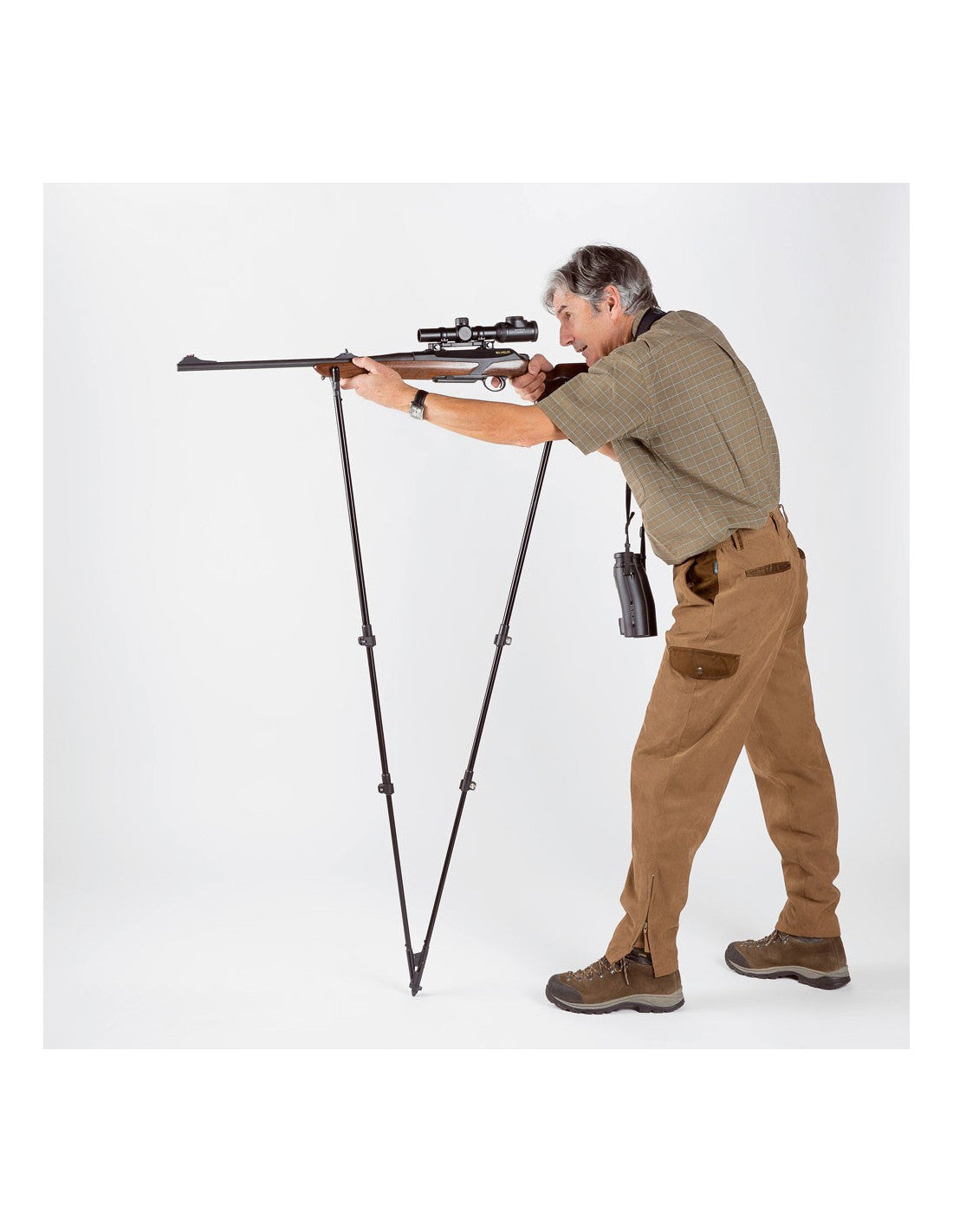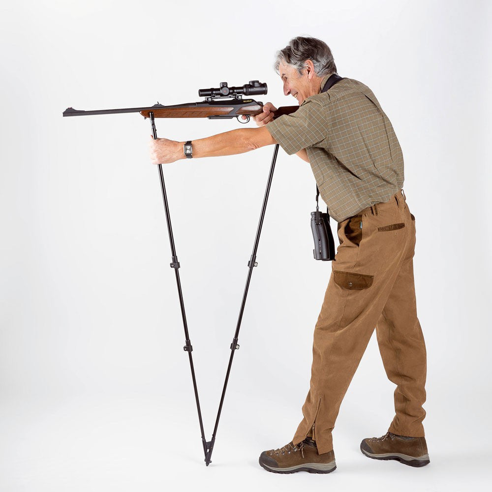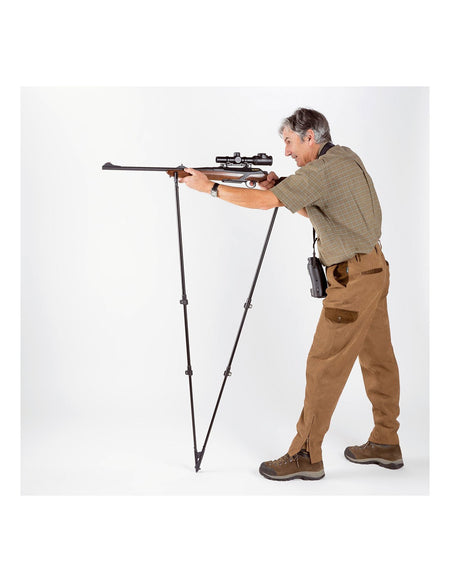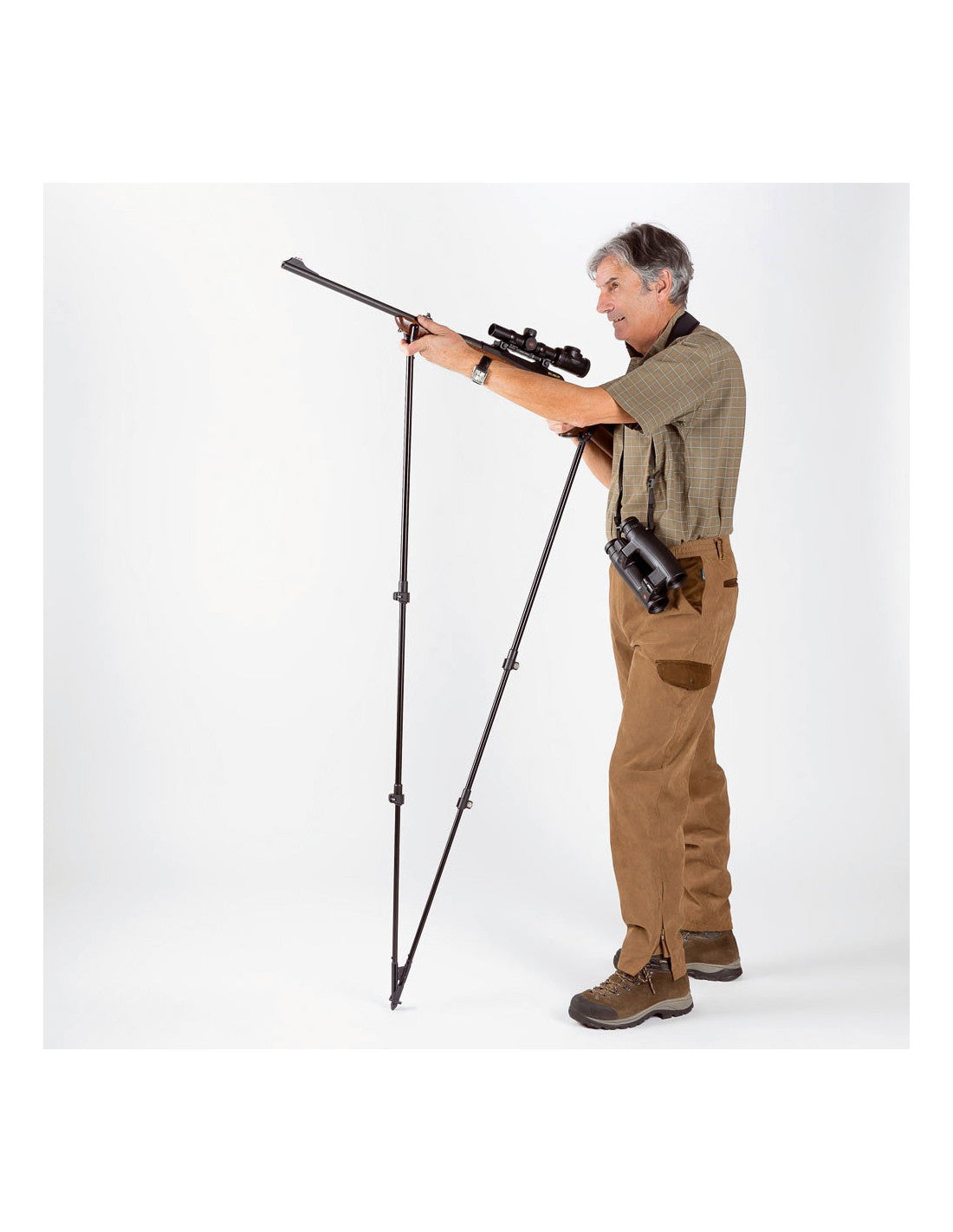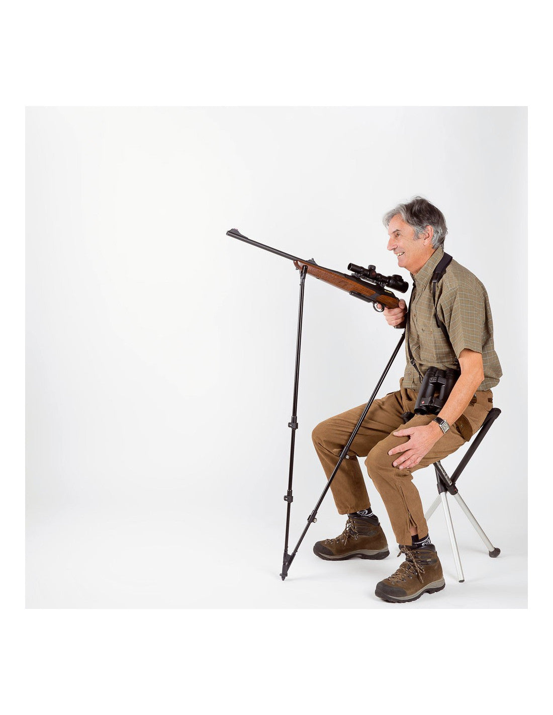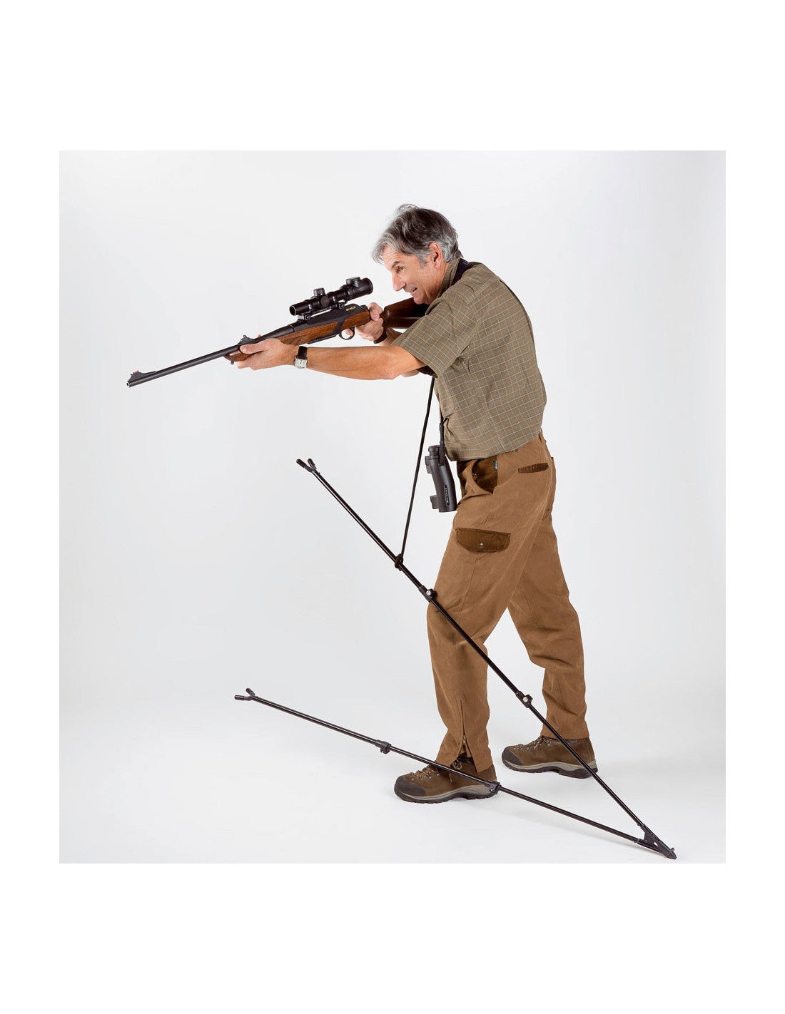 El Montería Stick se apoya en en el suelo con un solo pie, permitiendo cambiar la dirección de tiro con gran rapidez y perfecta estabilidad. Gracias a su nuevo sistema de ajuste, el Montería Stick se adapta fácilmente a todo tipo de puestos y a la morfología del cazador.