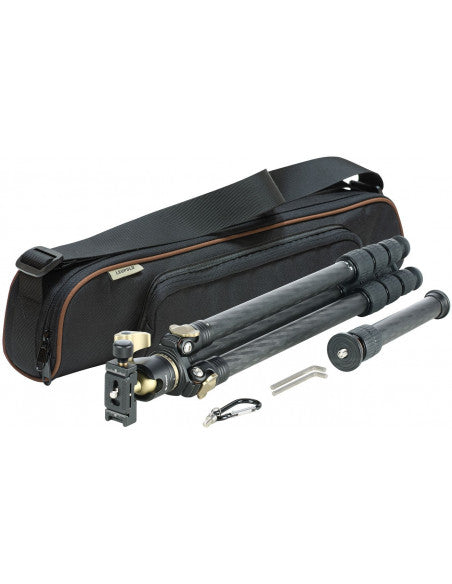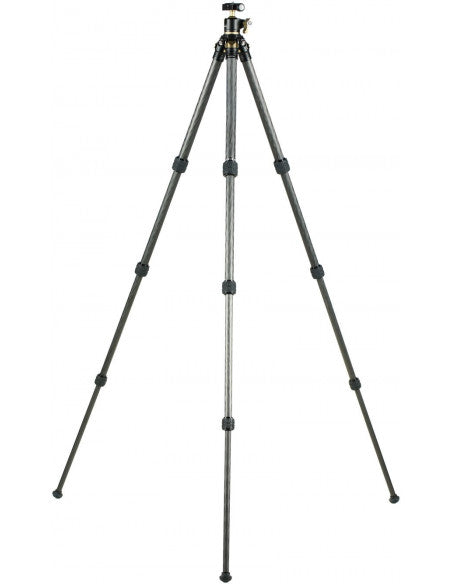 Este trípode ligero está repleto de características que amplían su rendimiento. Las cuatro secciones de las patas de fibra de carbono giratorias y bloqueables son perfectas para realizar ajustes rápidos de altura en el campo. Los bloqueos de pivote de 3 ángulos ofrecen la flexibilidad de instalarlo a tan solo 12,7 cm. del suelo, o puede extender completamente el Alpine a 147,3 cm. para observaciones de pie. Su acción suave de cabeza de bola también permite movimientos rápidos y precisos, mientras que el soporte de cabeza Arca-Swiss se adapta a la mayoría de accesorios y ópticas existentes.
