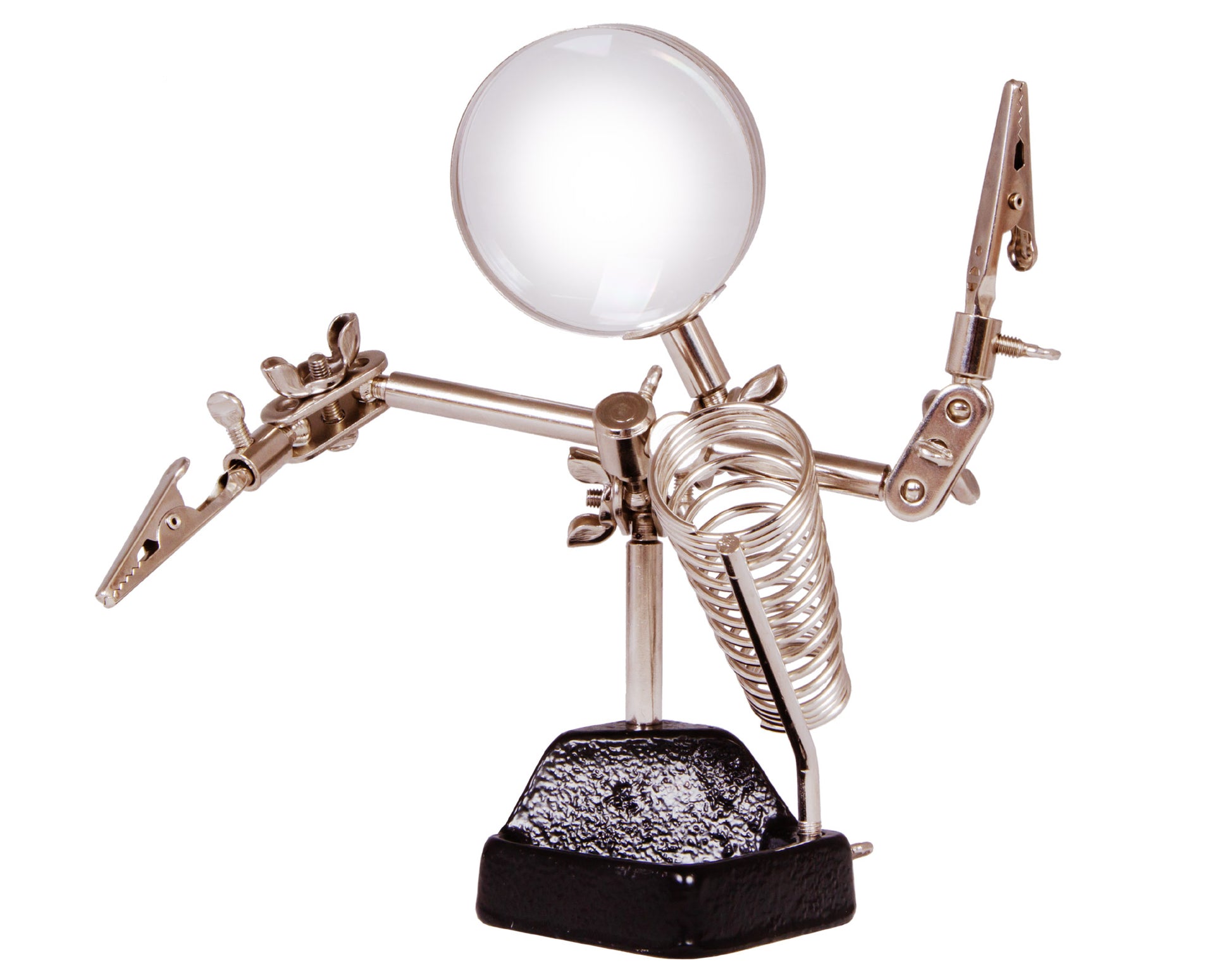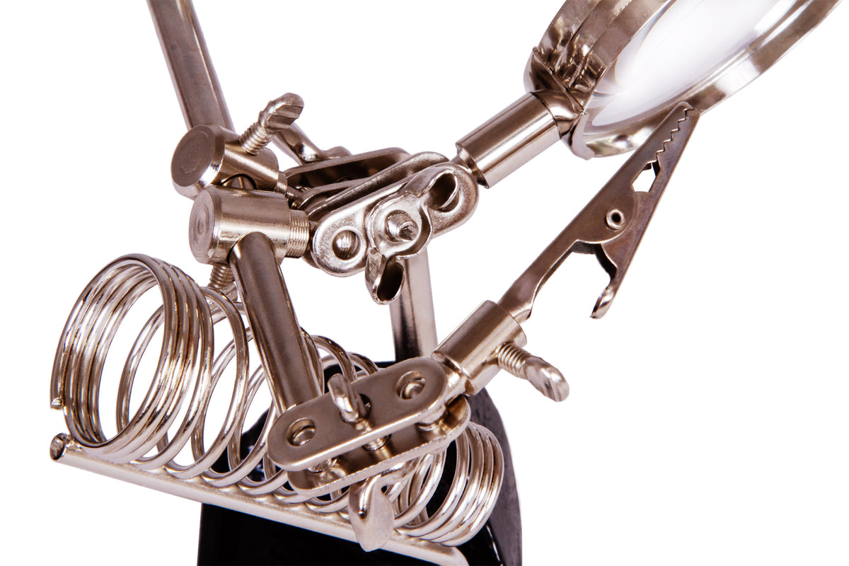 La lente está hecha de plástico óptico y proporciona una imagen clara y detallada de un objeto ampliado. Su cuerpo de metal duradero garantiza un soporte estable y una larga vida útil. Todas las lupas de esta serie tienen soportes para trabajos con manos libres que fijan objetos de forma segura.