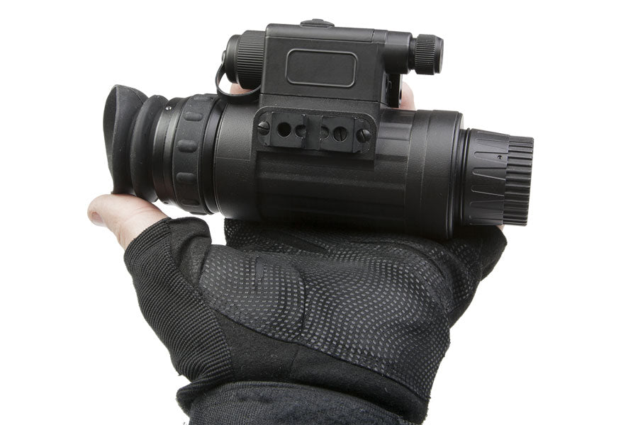 El monocular nocturno AGM WOLF-14, cuenta con un diseño muy compacto y resistente que podremos utilizar de muchas formas, bien sea montado en un casco o arnés para partidas de airsoft, de monocular de observación pudiendo acoplar una óptica con más aumentos, para fotografía acoplándolo a las cámaras, o a un visor o telescopio. Posee controles ergonómicos de fácil acceso y manipulación incluso con guantes, lo que le hace muy fácil de manejar. Podemos comprar lentes de 3X y 5X para poder sacar mayor rendimiento en la observación nocturna de recreo o vigilancia. Cuenta con un sistema de seguridad por el cual, cuando le alcanza una luz brillante directamente se apaga para preservar el tubo y la vista del usuario. Para un mayor control del funcionamiento del monocular nocturno, en el campo de imagen nos aparecerán dos testigos. Uno nos indica batería baja y el otro que el IR está conectado. Los productos de AGM cuenta con 3 años de garantía.