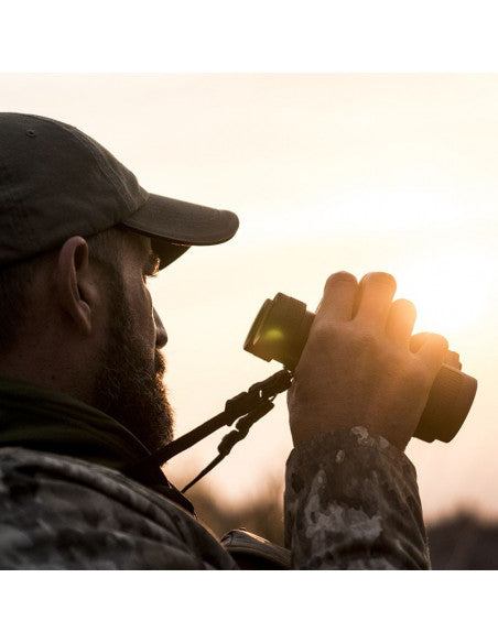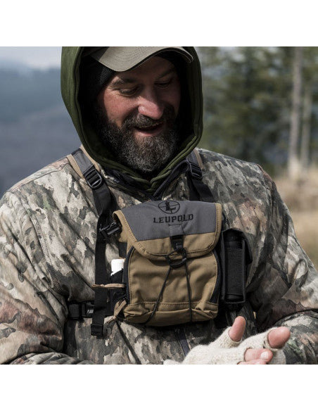 Este arnés de Leupold es duradero y está lleno de opciones, para que se pueda transportar los prismáticos y accesorios de forma segura y accesible. Las correas no son elásticas. Es ajustable y mantiene los prismáticos pegados al cuerpo.