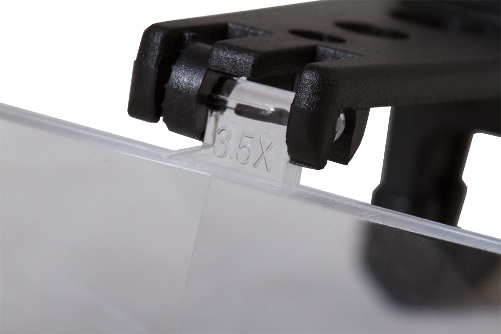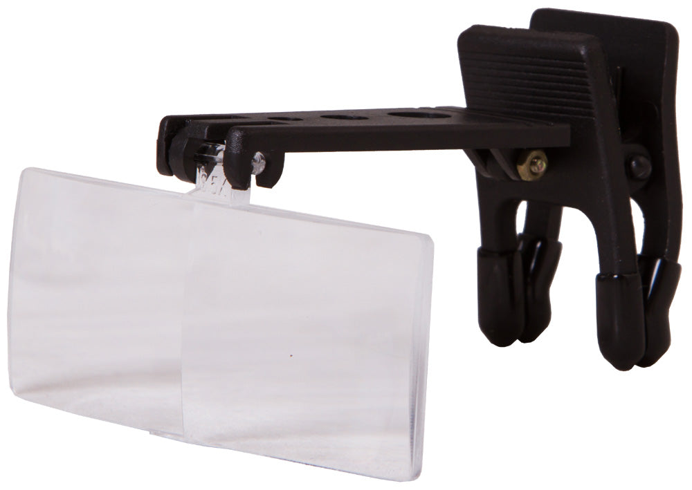 Las gafas lupa Levenhuk Zeno Vizor G0 están equipadas con lentes intercambiables si desea aumentar más la imagen, simplemente cambie de lentes, con tres aumentos disponibles: 1,5x, 2,5x y 3,5x. Las lentes se sujetan con una pinza de fácil colocación que mantiene la lupa firmemente en la posición elegida sin dañar la montura.
