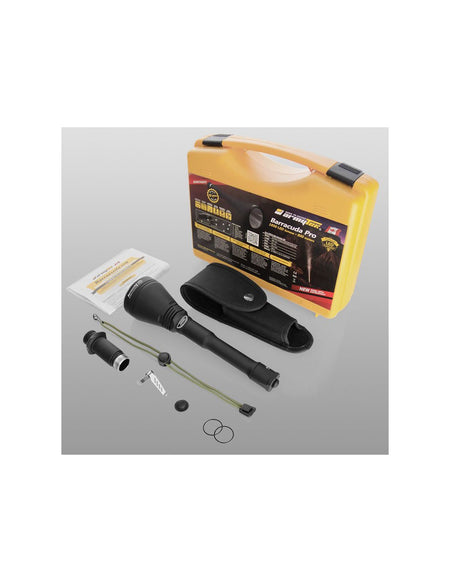 La linterna led ARMYTEK Barracuda XP-L HI de luz blanca garantiza una iluminación muy eficiente incluso de grandes superficies. Con una potencia luminosa de 1.150 lúmenes, la distancia del haz es de hasta 775 metros. Construida en aluminio de calidad aeronáutica con acabado corporal anti-abrasivo (anodizado duro tipo III premium 400HV), y con componentes realizados con materiales ultra-resistentes que aportan a esta linterna una alta durabilidad. Protección absoluta frente a impactos o vibraciones de gran magnitud. Incluso resiste el retroceso de una pistola de cualquier calibre y caídas desde 30 metros de altura. Gracia a su construcción impermeable con certificación IP68 esta linterna puede sumergirse durante 5 horas a una profundidad de 50 metros. Incorpora un mecanismo sencillo con protección contra encendido accidental.