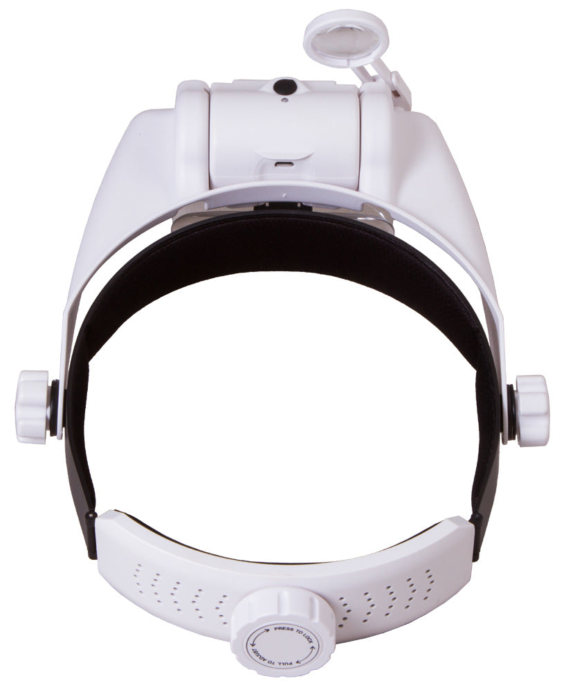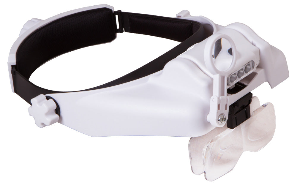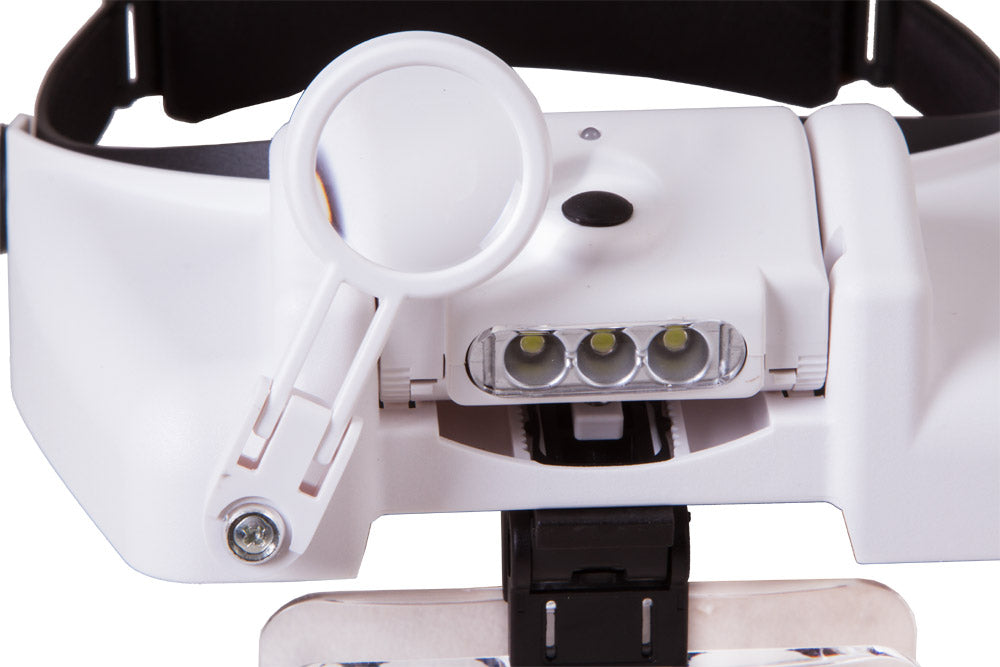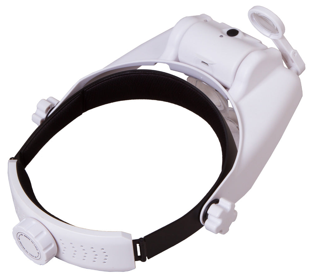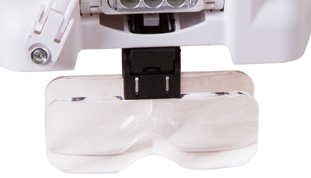 Las lupas frontales recargables Levenhuk Zeno Vizor HR tienen una iluminación alimentada por una pila recargable. Las lentes se pueden combinar libremente y permiten conseguir diferentes valores de ampliación. Si es necesario, puede girar las lentes hacia arriba para observar el área de trabajo a simple vista.