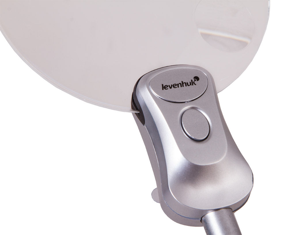 La lupa está montada en una base lisa y estable y la lente está situada sobre un brazo flexible que se ajusta fácilmente a la posición deseada. La Levenhuk Zeno Desk D5 es una lupa compacta y ligera que podrá llevar siempre consigo.