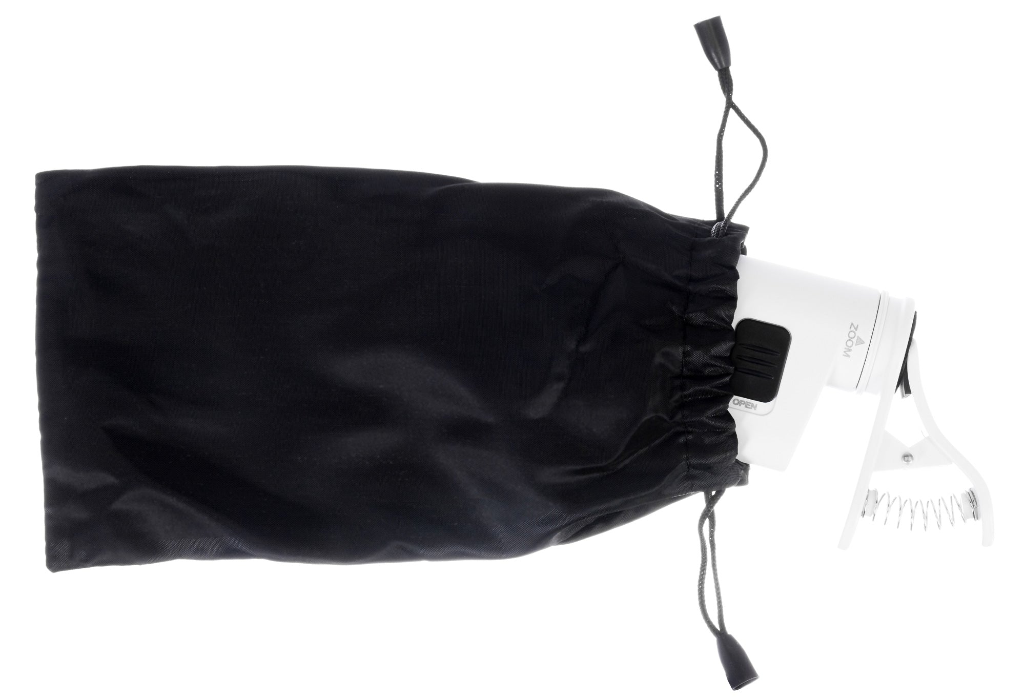 - Microscopio de bolsillo con pinza para colocar un dispositivo móvil