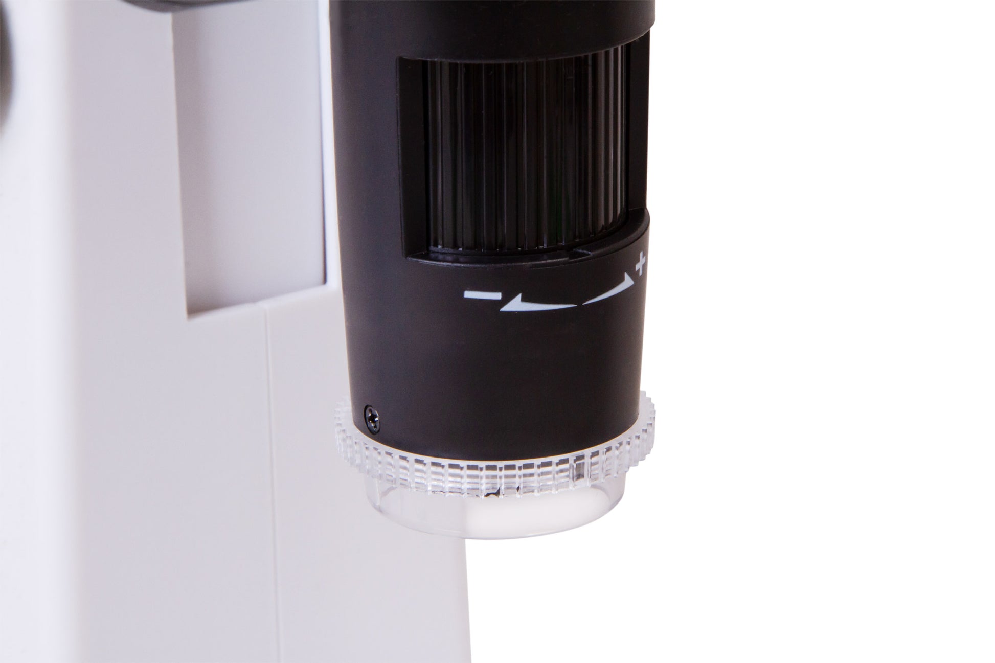 Las imágenes son capturadas por una cámara digital de 5M. La cámara proporciona una ampliación de 10–300x, y un zoom adicional permite observar objetos con una ampliación de hasta 1200x. La imagen obtenida, vistosa y detallada, se transmite a una pantalla LCD incorporada. Además, la cámara incorporada permite tomar fotos y grabar vídeos. Los botones de control se encuentran justo debajo de la pantalla. Se utilizan para configurar la calidad de las fotos y del video, activar y desactivar la toma de fotos a intervalos de tiempo (time-lapse), elegir el modo de video circular y establecer la fecha y la hora.