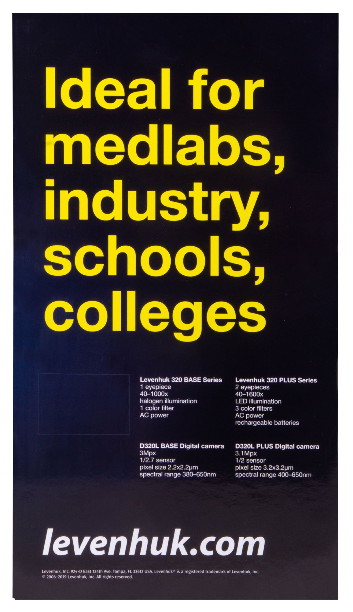 El microscopio Levenhuk D320L PLUS es compatible con las cámaras digitales Levenhuk (se venden por separado). Las cámaras Levenhuk se instalan en el tubo del ocular en lugar del mismo.