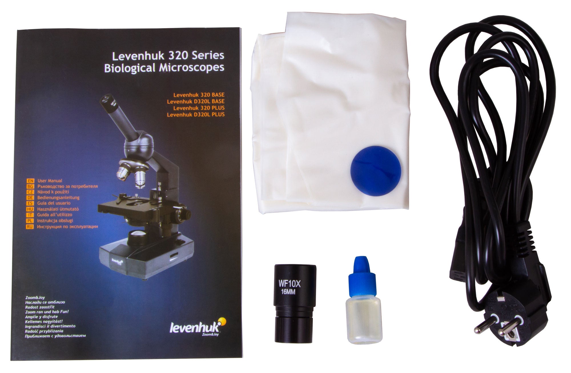 El microscopio Levenhuk 320 BASE es compatible con las cámaras digitales Levenhuk (se venden por separado). Las cámaras Levenhuk se instalan en el tubo del ocular en lugar del mismo.