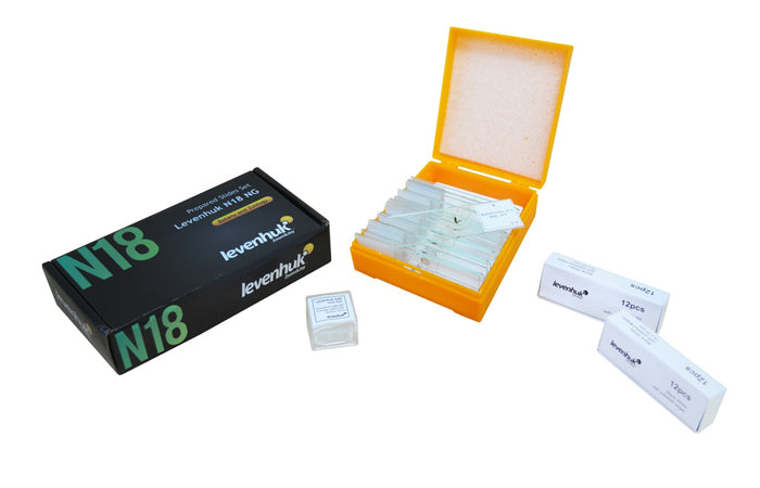 El set de preparaciones Levenhuk N18 NG incluye lo siguiente: