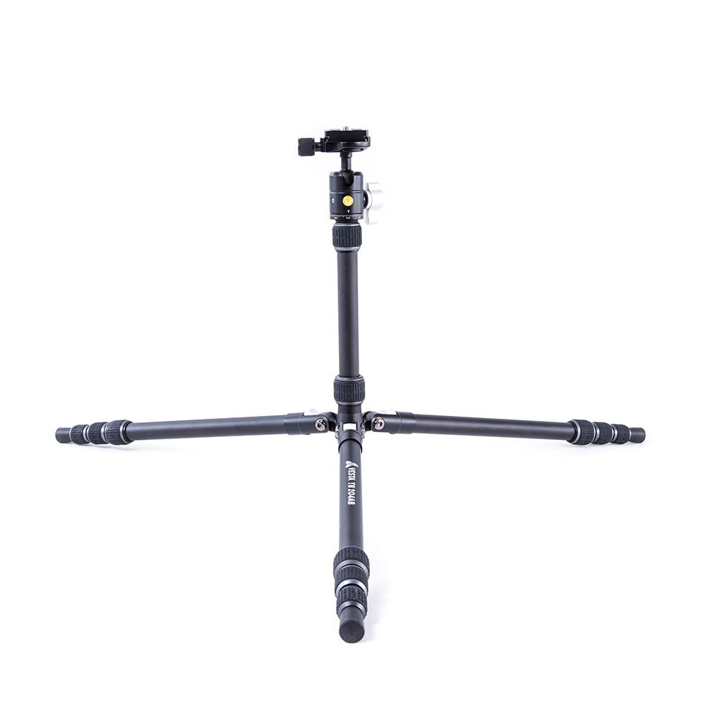 Para fotografía macro/ángulo bajo, este trípode de viaje tiene tres ángulos de pata fáciles de ajustar (21°, 50° y 80°) y viene con un adaptador de ángulo bajo que le permite quitar la columna central y bajar hasta el suelo. Alternativamente, puede simplemente invertir la columna central. También incluye una rótula de bola VESTA T-46 compatible con Arca Swiss con una única y gran perilla de bloqueo para facilitar el bloqueo/desbloqueo mientras trabaja, y la zapata de liberación rápida QS-64.