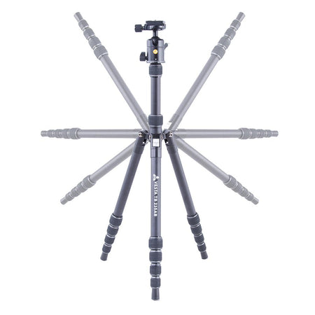 Para fotografía macro/ángulo bajo, este trípode de viaje tiene tres ángulos de pata fáciles de ajustar (21°, 50° y 80°) y viene con un adaptador de ángulo bajo que le permite quitar la columna central y bajar hasta el suelo. Alternativamente, puede simplemente invertir la columna central. También incluye una rótula de bola VESTA T-51 compatible con Arca Swiss con una gran perilla de bloqueo para facilitar el bloqueo/desbloqueo mientras trabaja, y una Zapata de liberación rápida QS-64. Esta rótula también tiene un bloqueo de la panorámica separado, que le permite crear panorámicas suaves, sin el temor de aflojar la rótula de bola o perder el nivel en la cámara.