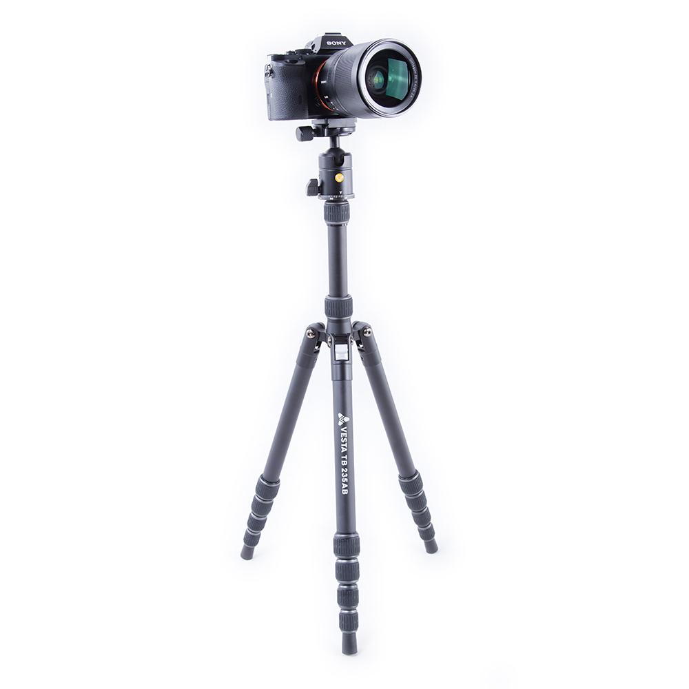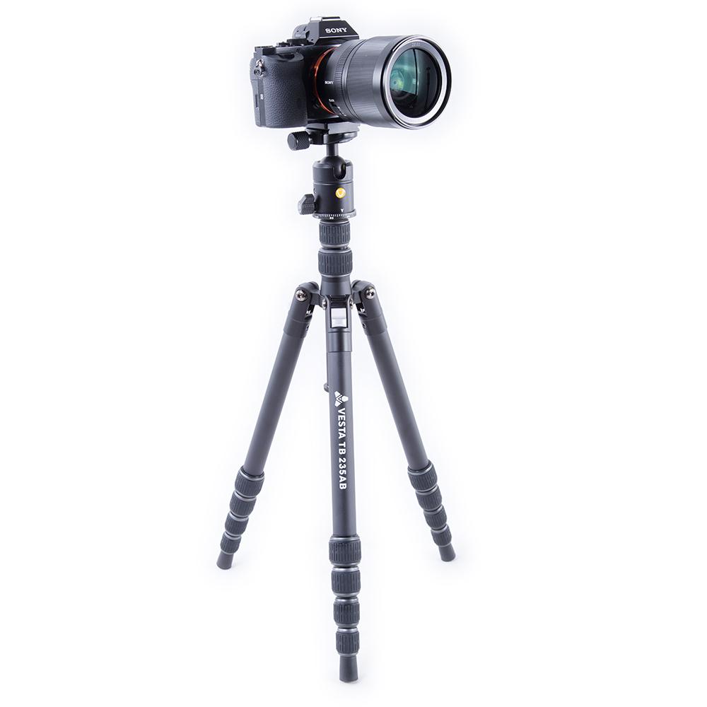El VESTA TB 235AB es un kit de trípode de viaje de aluminio, ligero y compacto, diseñado para una máxima portabilidad, pero que aun así ofrece una base estable para la mayoría de los kits de cámaras sin espejo o DSLR.
