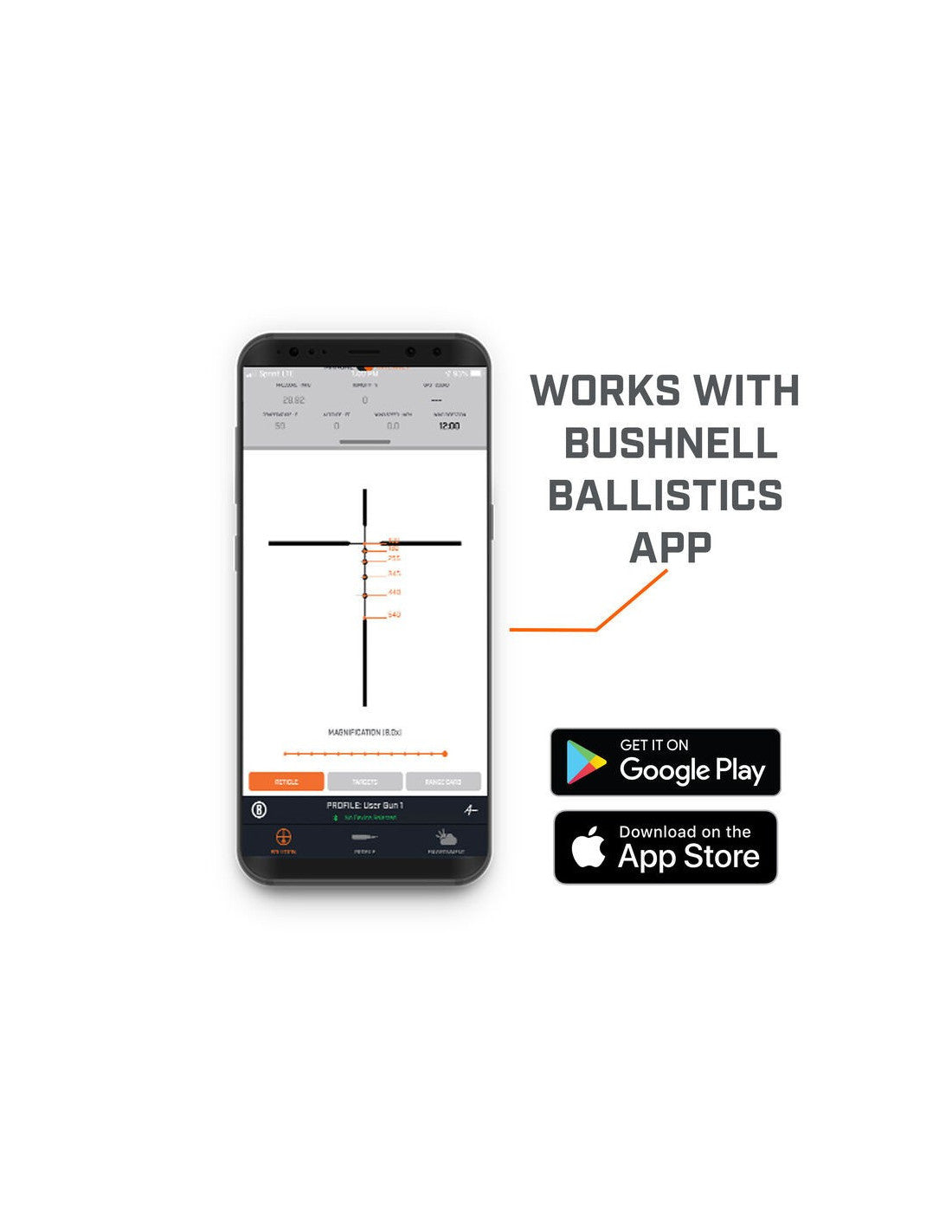 El modelo Banner 2 3-9x40 lleva una retícula balística rápida DOA en segundo plano focal fácil de usar. La retícula balística rápida DOA proporciona 5 puntos de caída con líneas de retención de viento de 5 mph. La retícula se puede utilizar para cualquier calibre que coincida con los cartuchos de caza típicos hasta 500 yardas. Con la aplicación gratuita "Bushnell Ballistics", puede determinar rápidamente sus distancias exactas en la retícula, lo que le permite tener confianza en cada disparo.