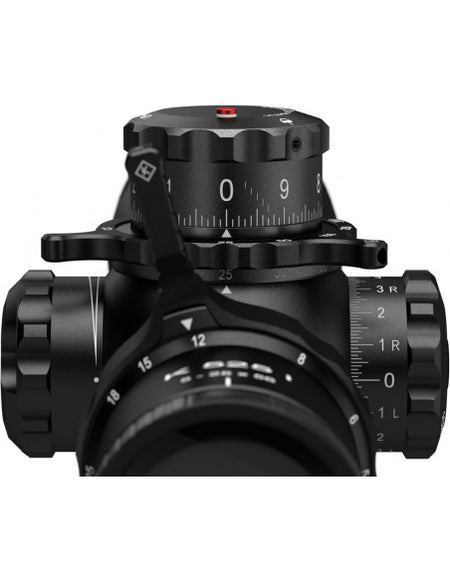 La protección contra giro TWIST GUARD, ya implementada y patentada, es eficaz para evitar un cambio no intencionado de la torreta lateral gracias a su cubierta de libre rotación. El tirador permite un manejo rápido y sin obstáculos, ya que no se invierte tiempo en «bloquear» o «desbloquear». La palanca de mando extralarga y la rueda Parallaxe-Spinner que se proporcionan permiten ajustar de forma rápida e intuitiva los aumentos y la compensación de paralaje. El DLR K525i dispone, asimismo, de la innovadora retícula iluminada SKMR4 en el primer plano focal, que se ha desarrollado especialmente para los requisitos dinámicos de los campeonatos, como en las PRS.