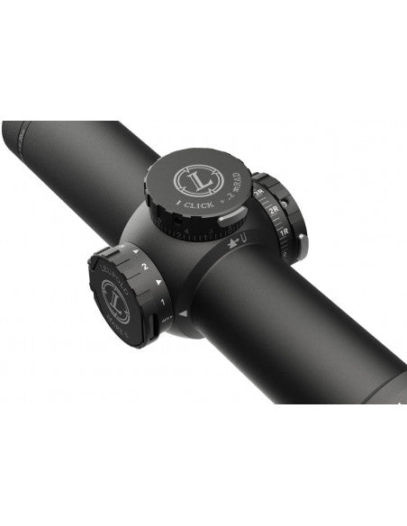 - Los ajustes de elevación y viento con bloqueo M6C1 Zerolock™ de bajo perfil cuentan con diales táctiles y audibles de 2/10 mil por clic y un recorrido de elevación sin precedentes de 11 milirradianes en una sola revolución.